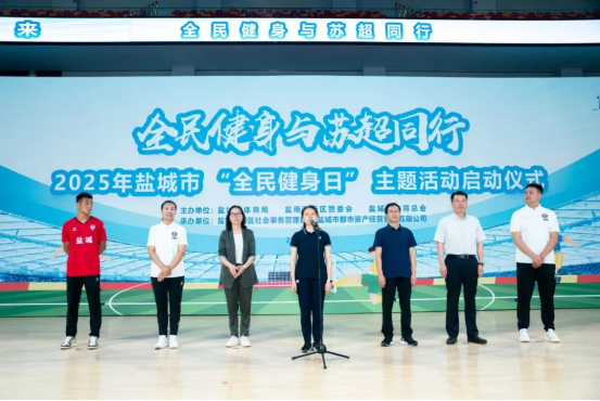 8月3日,盐城市以“全民健身与苏超同行”为主题,率先启动全民健身日系列活动。活动现场,足球操、街舞、武术、广场舞等表演轮番上演,市民运动爱好者成为舞台主角。柔道奥运冠军杨秀丽、游泳世界冠军张琳现身活动现场,与苏超盐城足球队队长共同宣读《全民健身与苏超同行倡议书》。前中国女足队长王坤亲自指导青少年足球训练,为苏超联赛加油助威。